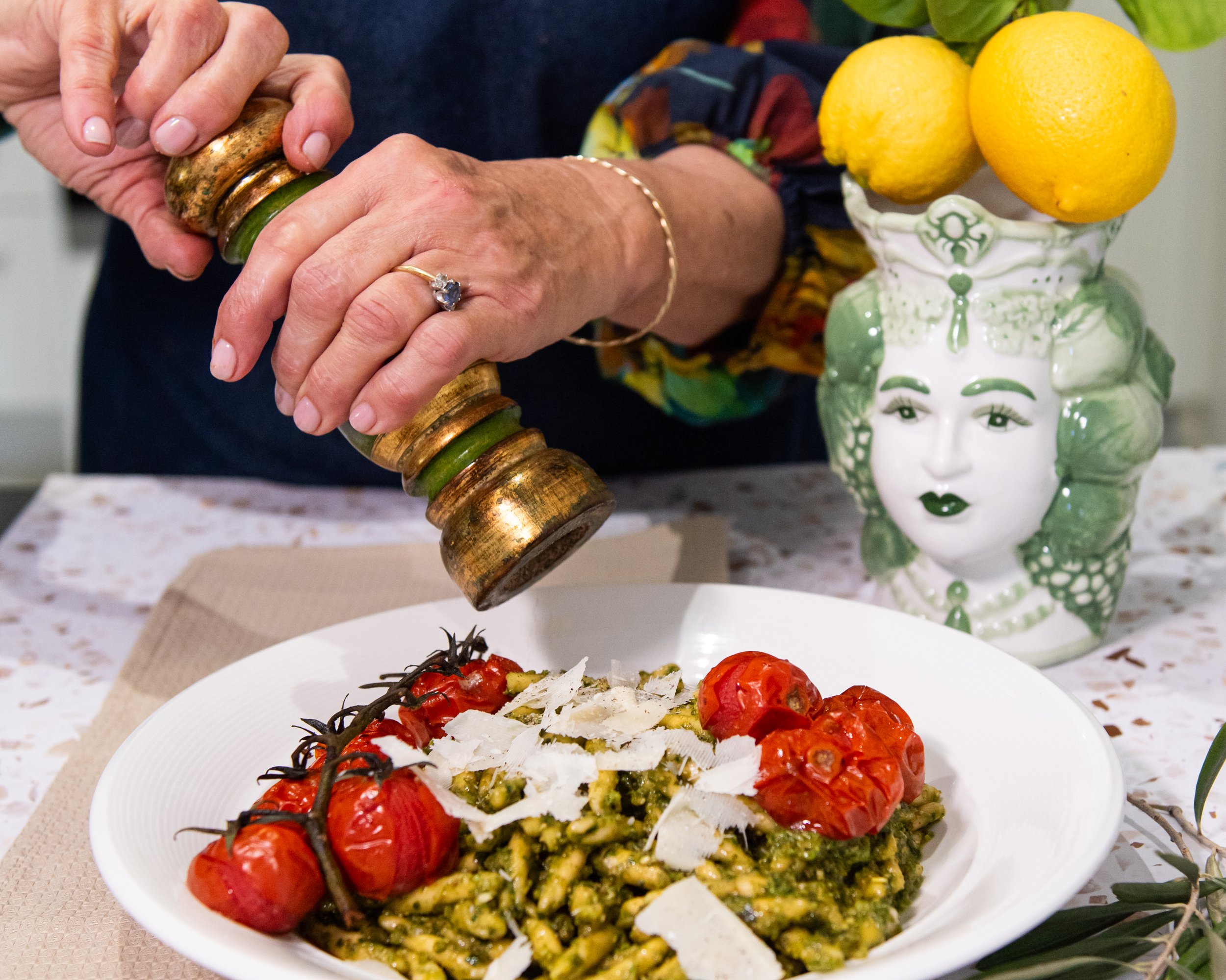 A simple, vibrant pasta that celebrates fresh basil pesto and sweet, slow-roasted truss tomatoes. It’s full of colour, flavour, and the kind of effortless charm that makes it perfect for both weeknight dinners and relaxed gatherings.